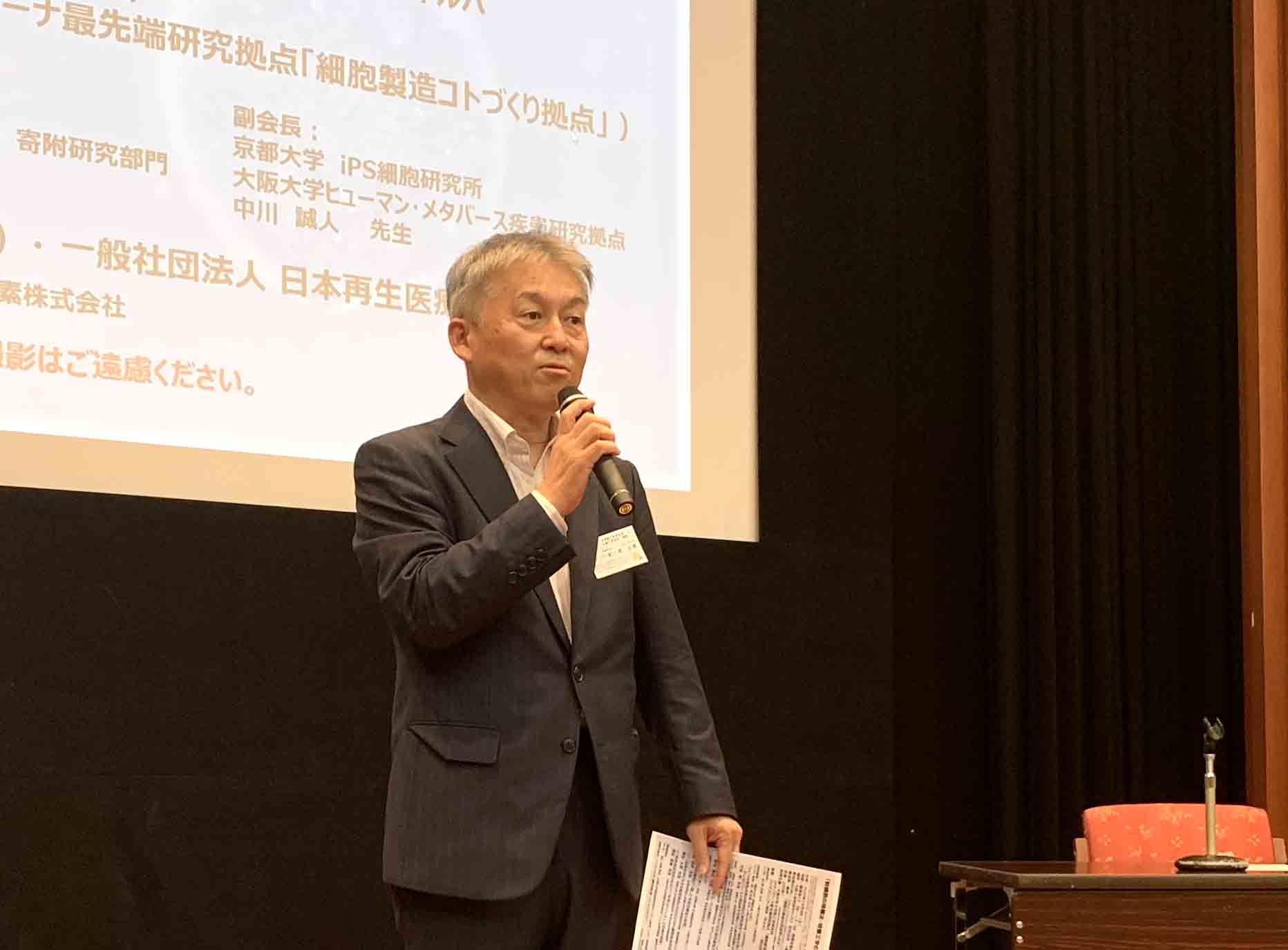 血液内科教授の高折晃史先生による挨拶。京大病院の病院長でもある。 |