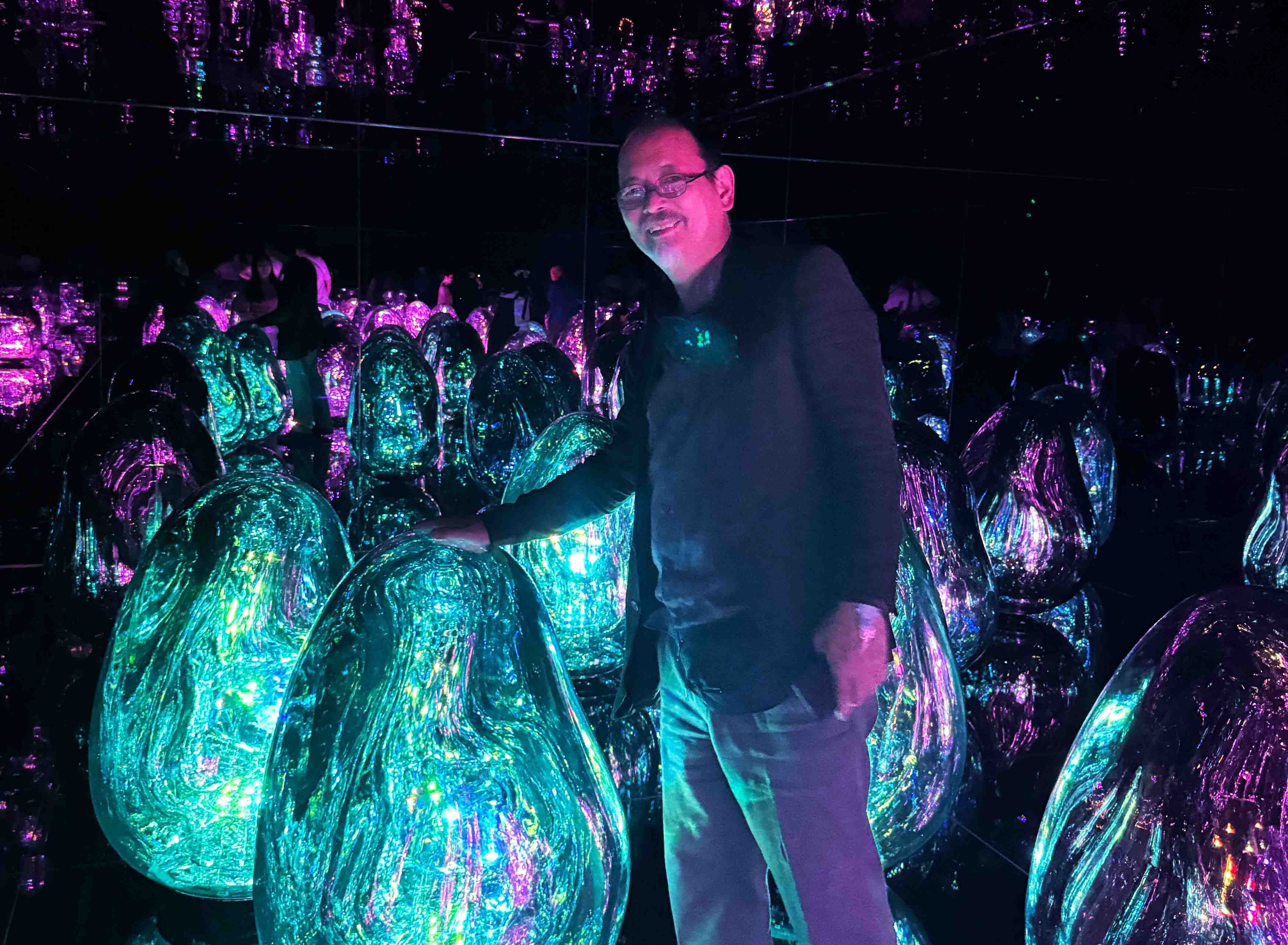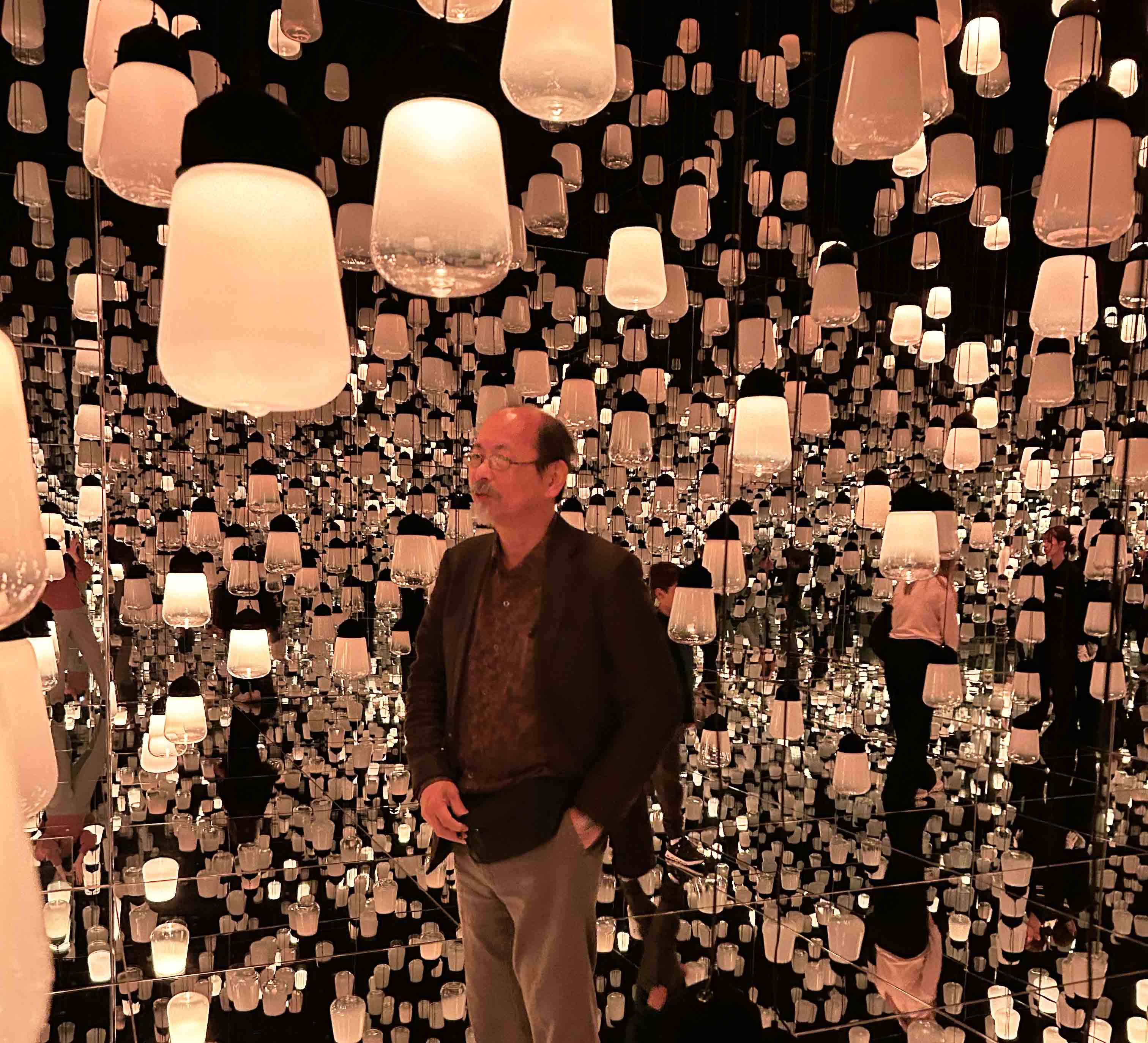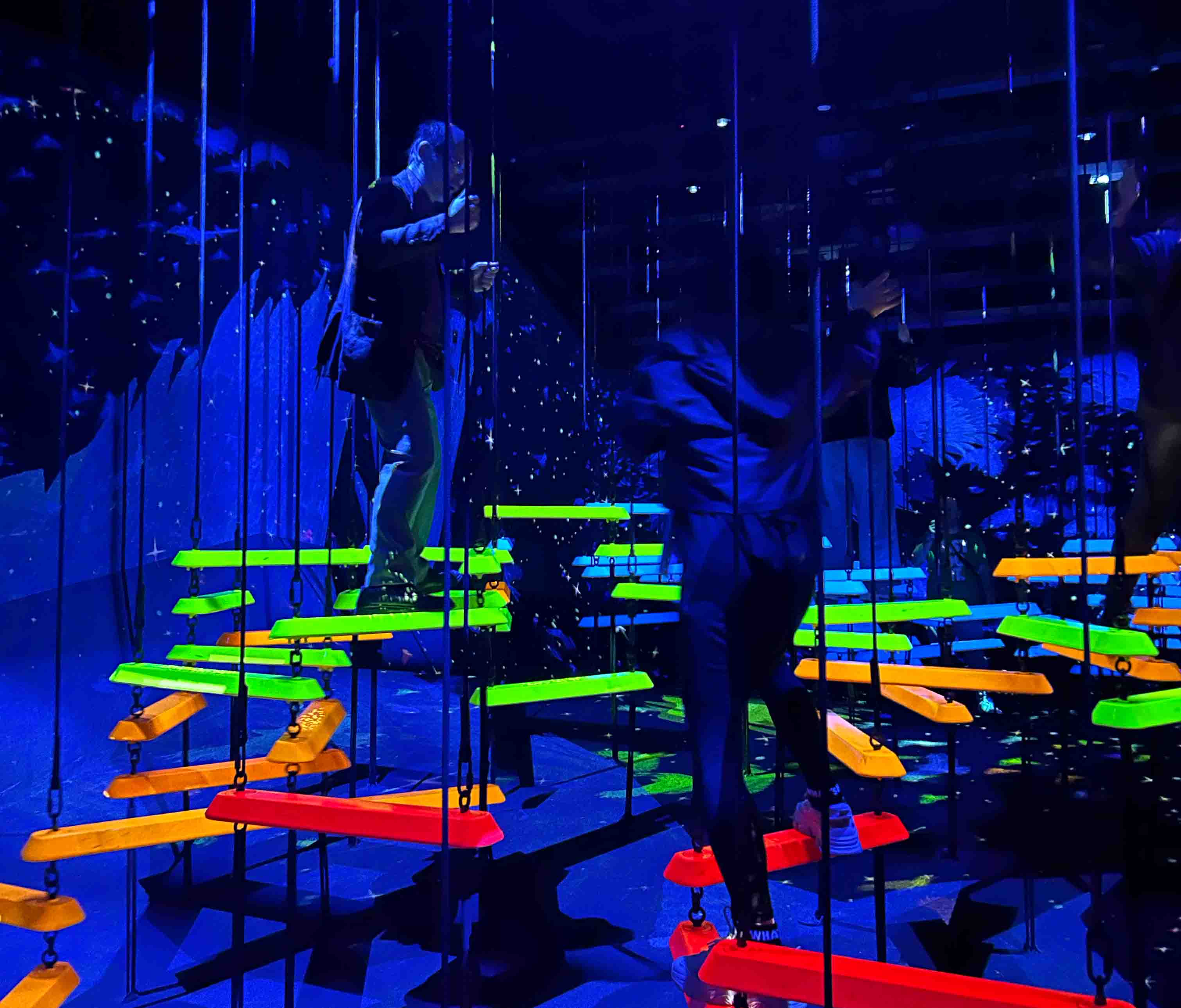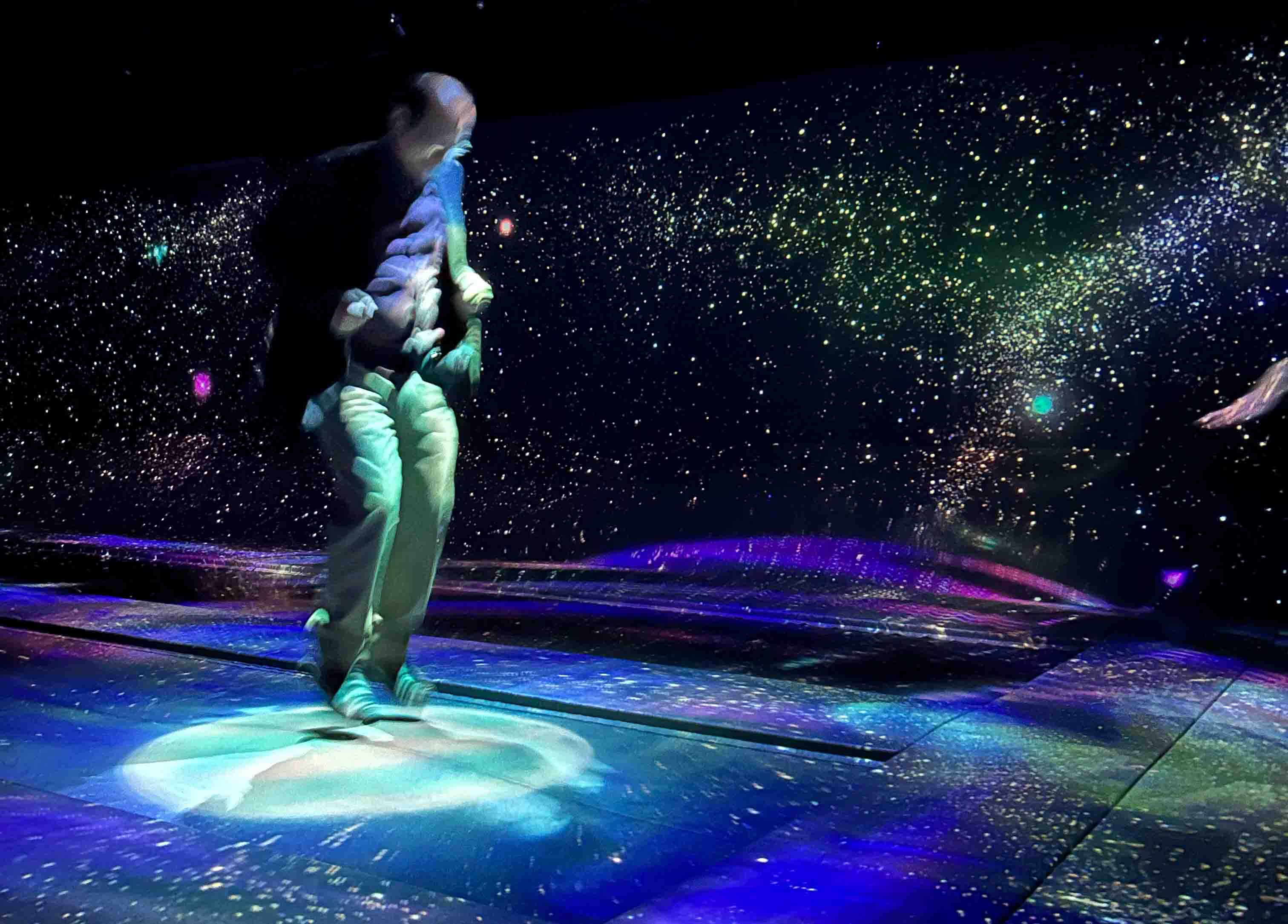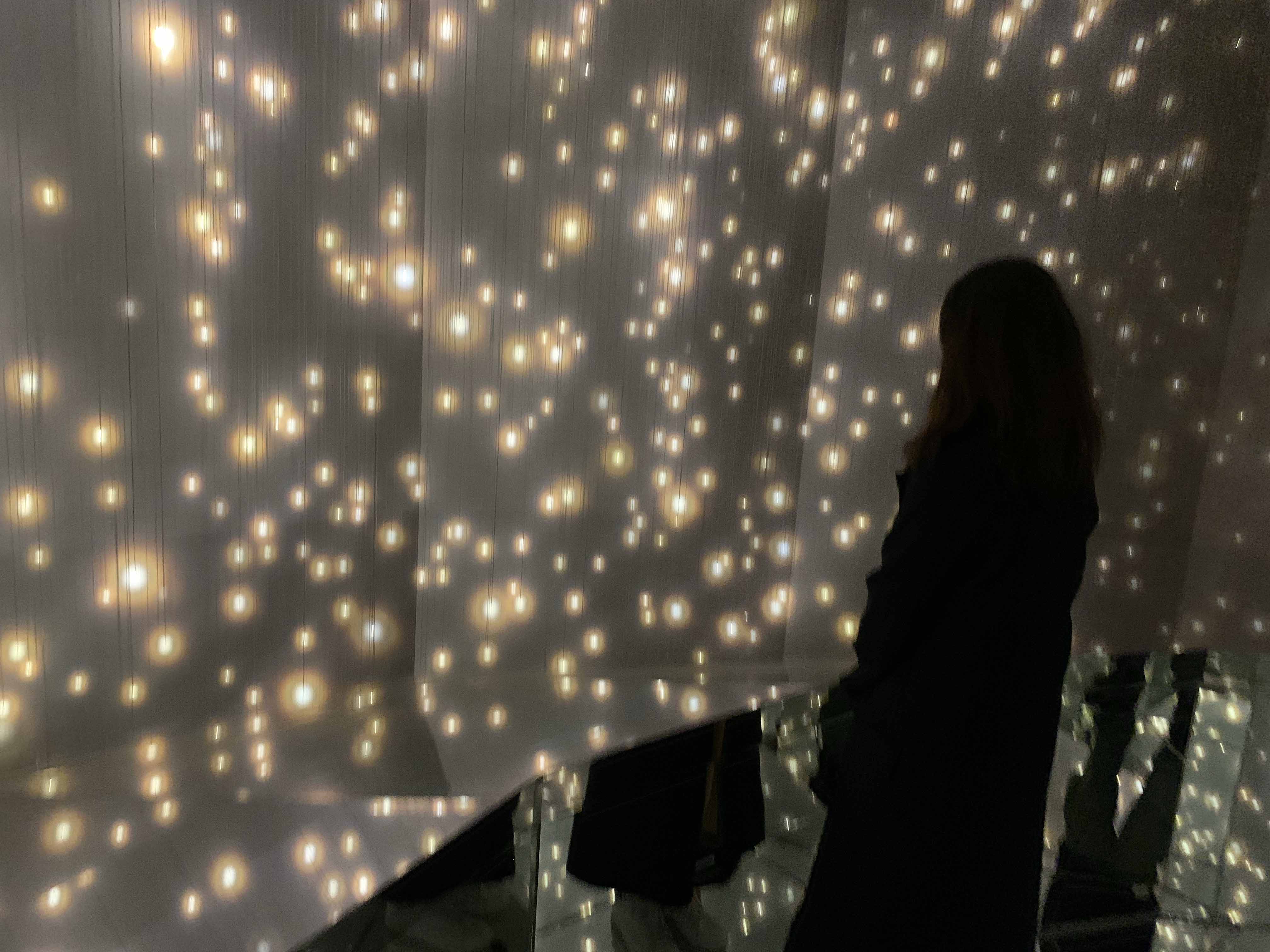 ランプの部屋。インタラクティブで、人の動きに反応して色が変わる。 |
