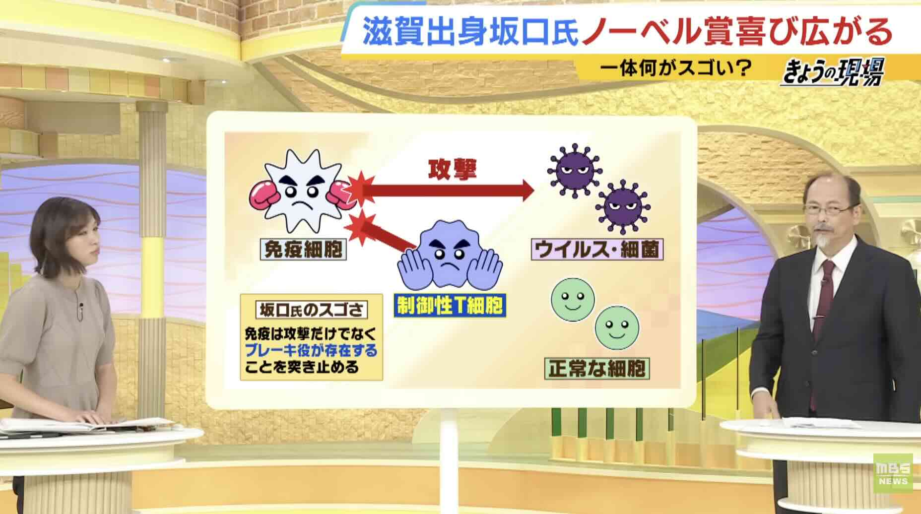「キラーT細胞はウイルス感染細胞を殺すことで感染の拡大を防ぐ」「このキラーT細胞を薬のように使う」と解説。イラストを使ってもらえた。 |