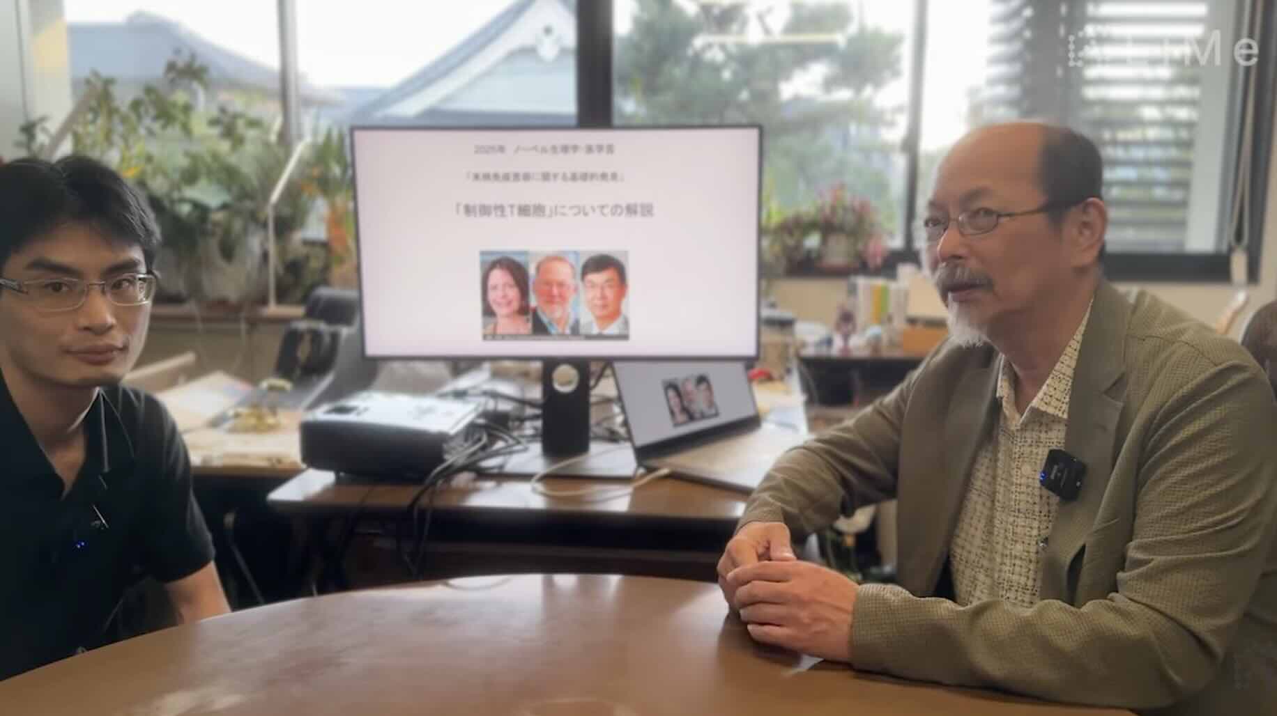 この日の夕刻、京大の腫瘍内科講座で、免疫について、質疑応答込み1時間の講義をして、20人くらいに聴いていただけた。今回の講義は菊池理先生(向かって左端、がん免疫総合研究センター准教授)がアレンジしてくれた。菊池先生は免疫サマースクールに参加されていた(2025年8月25日の記事参照)。私の向かって左隣は、武藤学先生(腫瘍薬物治療学講座教授)。 |