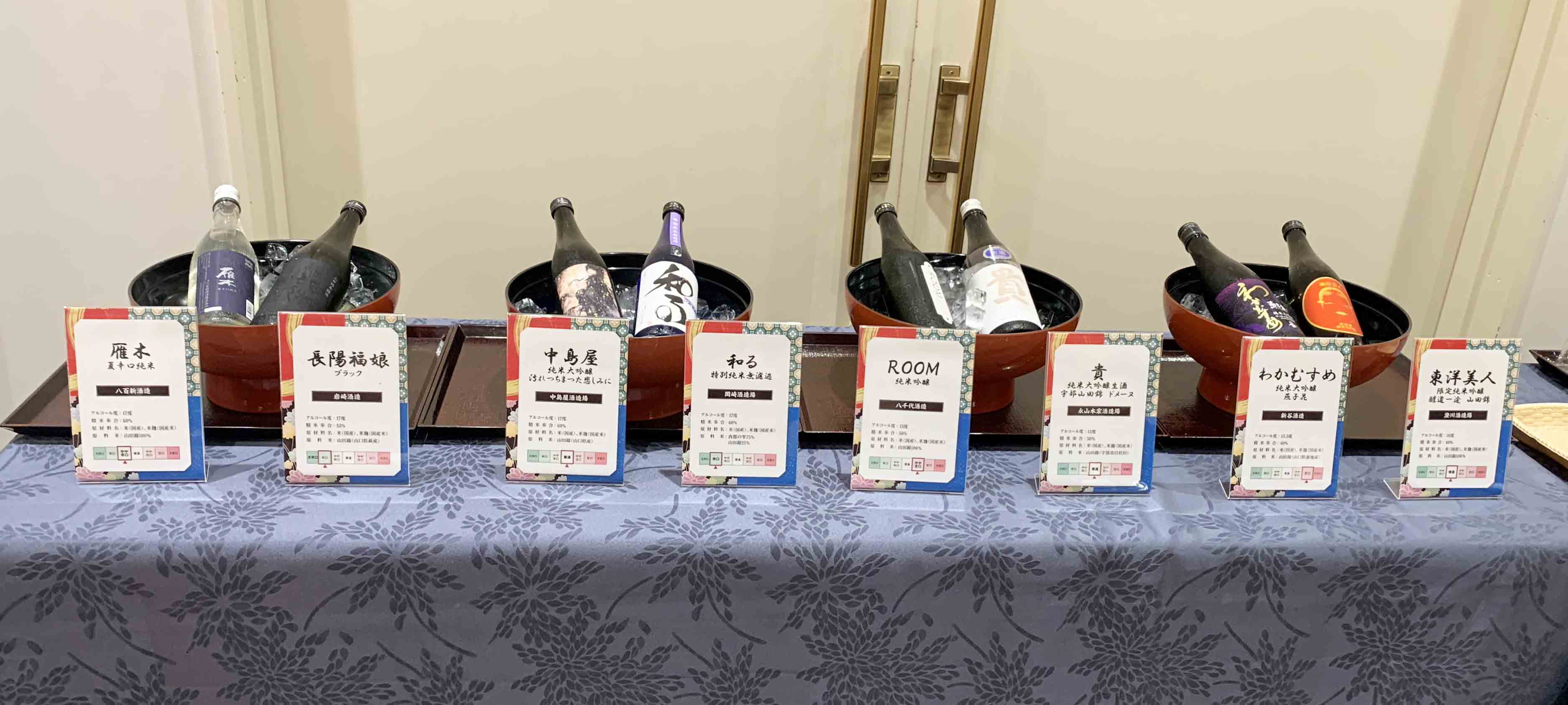 今回供された日本酒の説明のプレゼンの中で使われたスライド。少しずつ、全ての銘柄を飲んでみたが、どれも美味しかった。 |