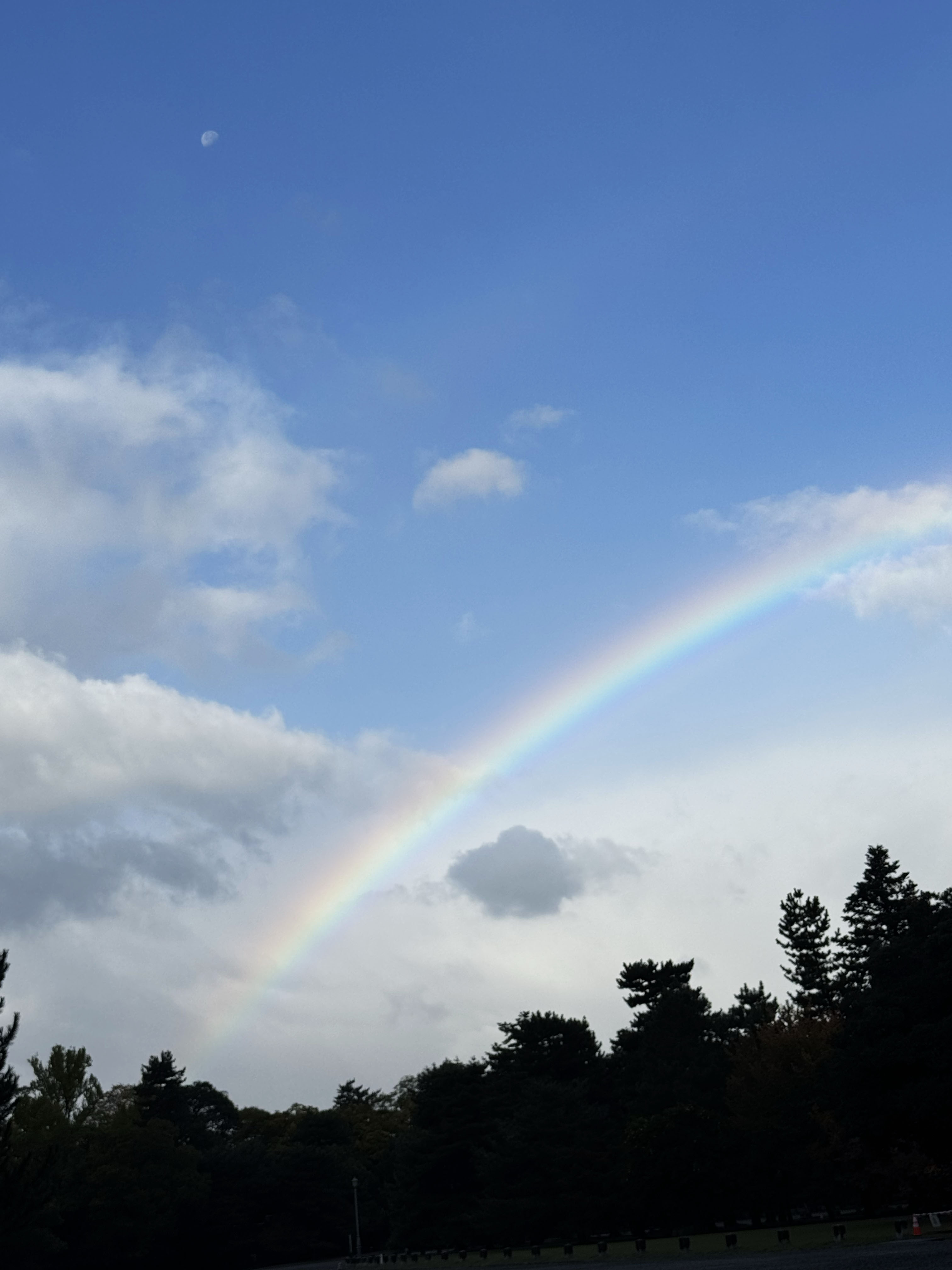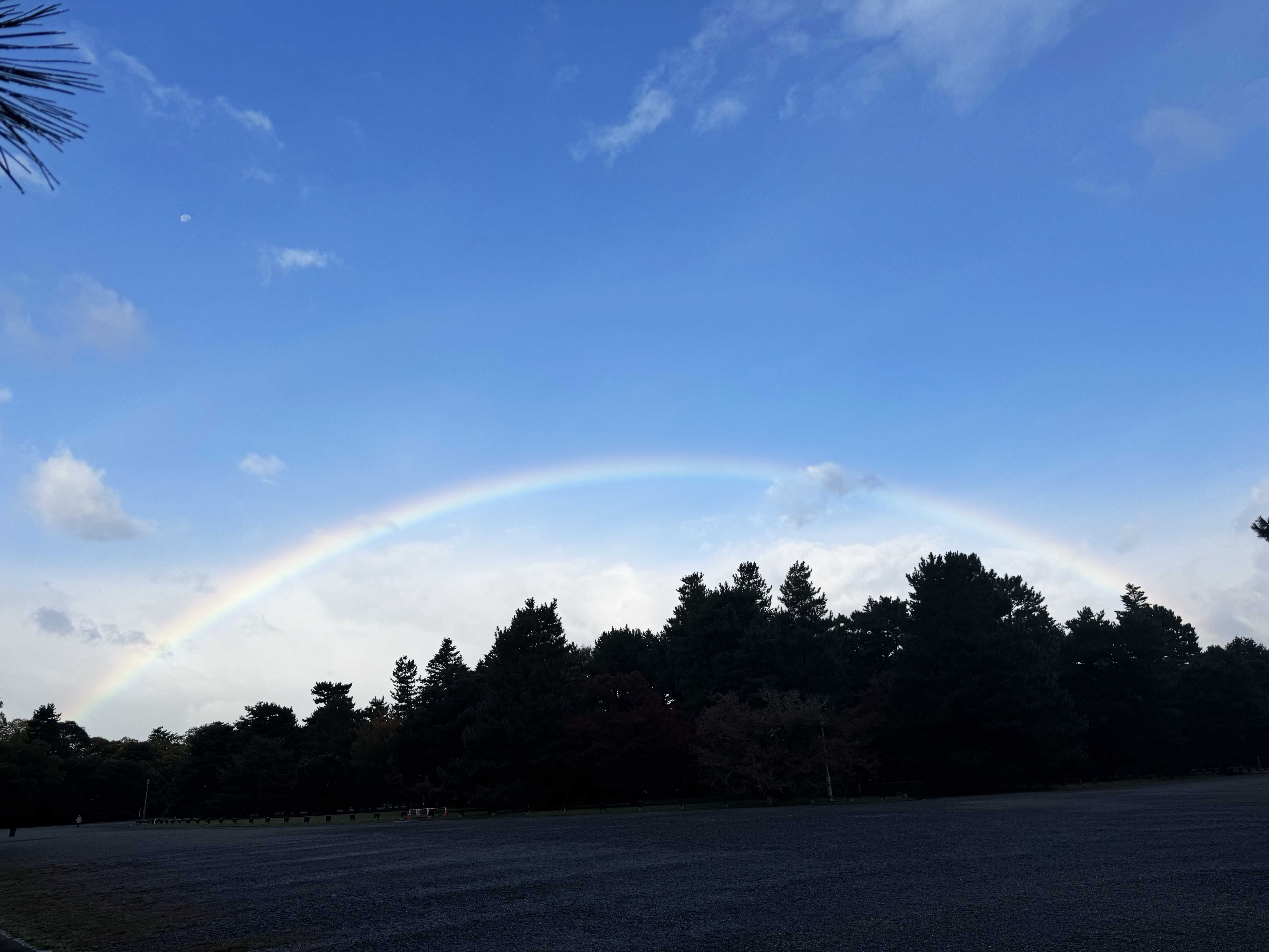 この日の朝、御所で虹が見られたとの事。秘書の宮武さんが撮った写真。 |