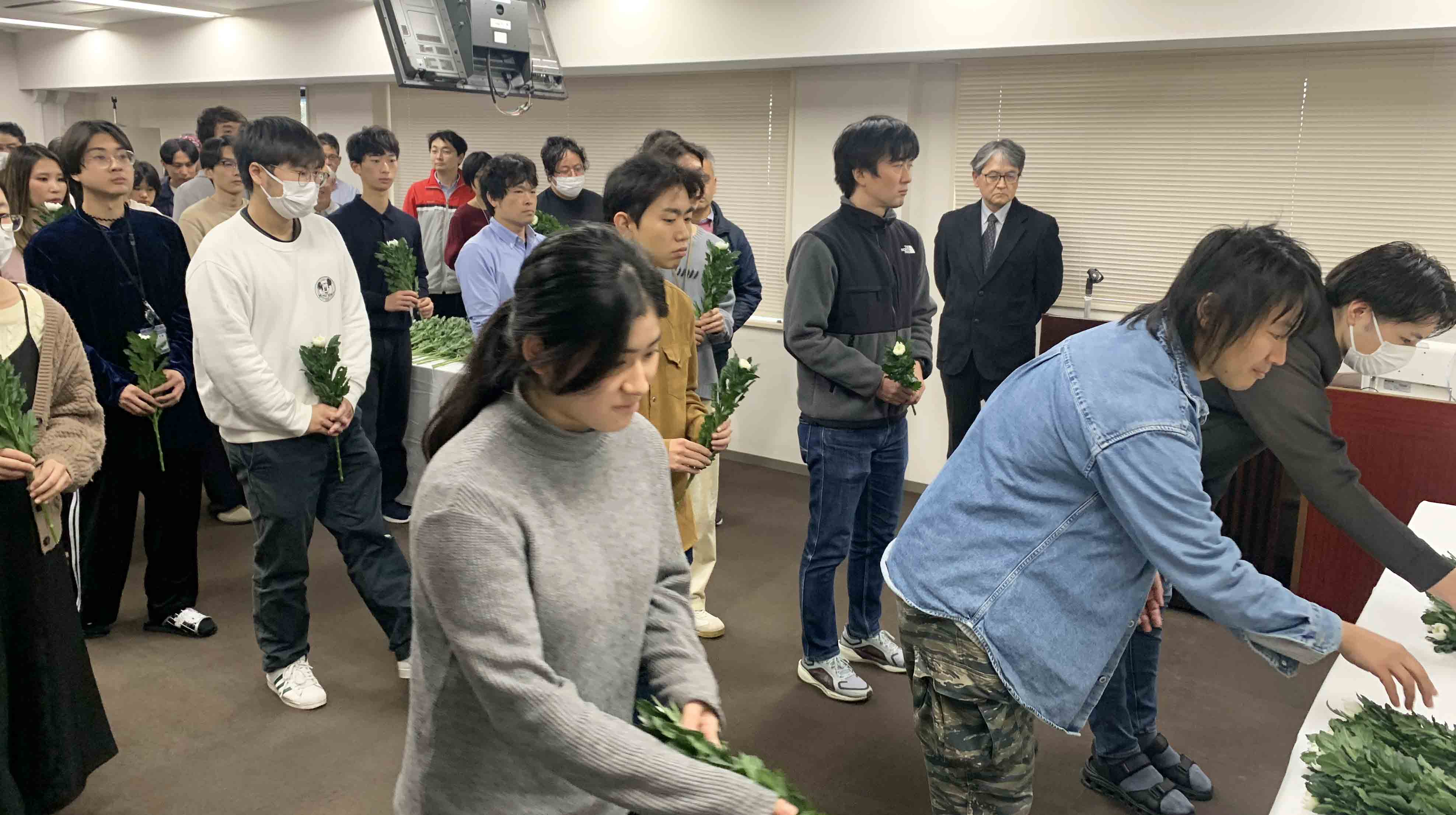 この写真は11月14日、西村君の講義を受けているところ。 |