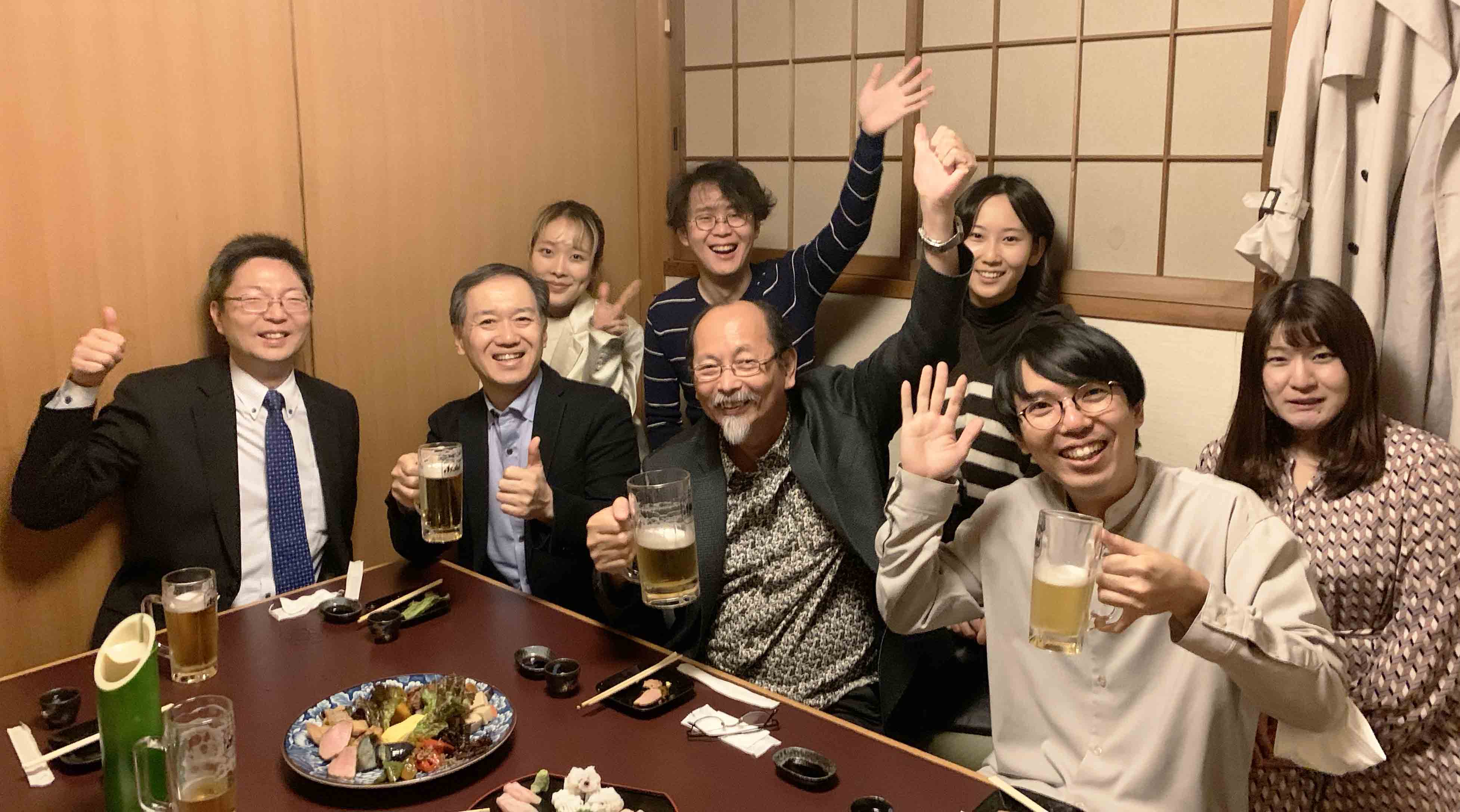 片付けが終わった後、今回の会のオーガナイザー+有志で、河本教授室で反省会。今回は、第一回としては大成功だったと言えよう。次回に向けての建設的な意見が交わされた。 |