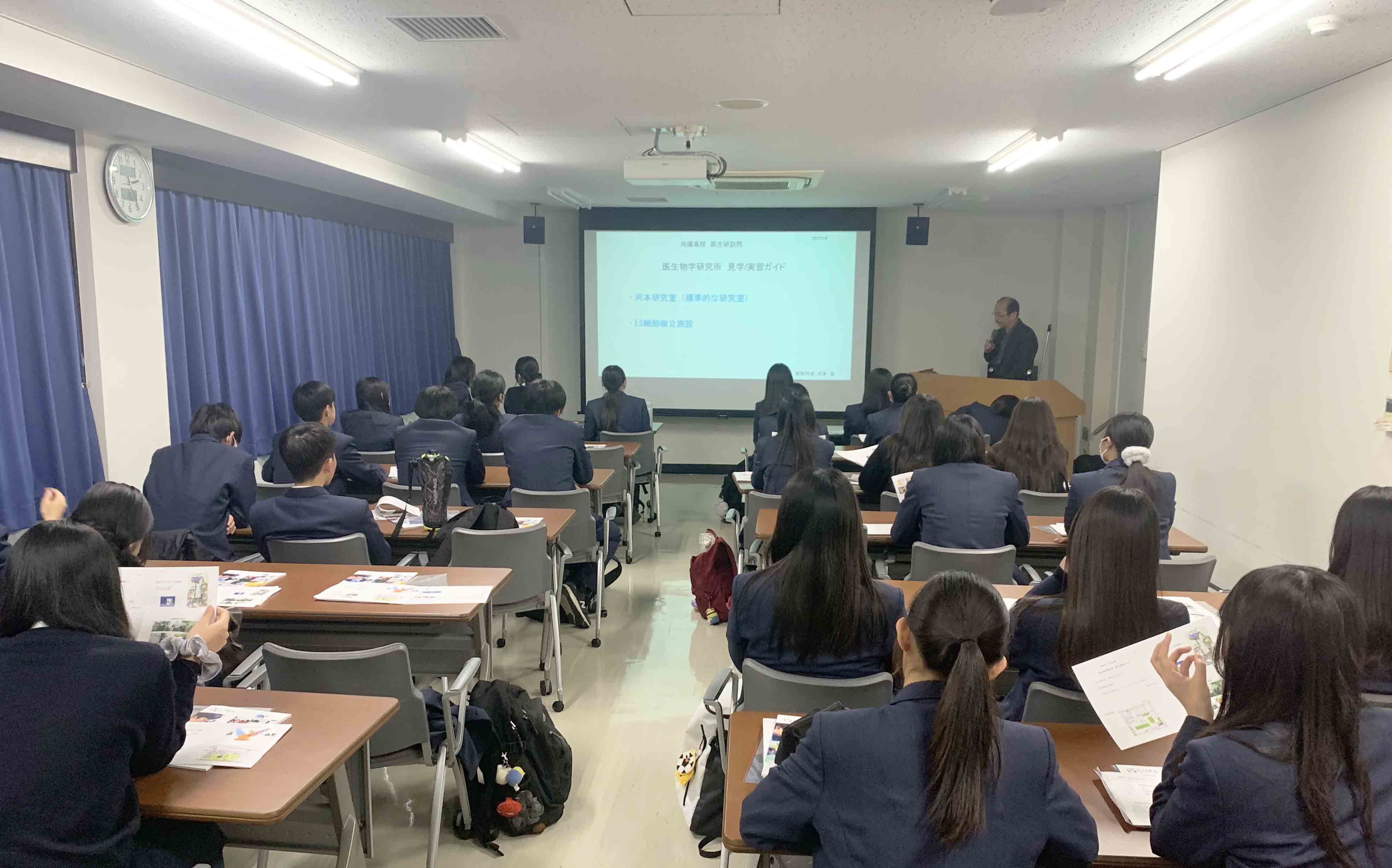 この日の午後、和歌山県の向陽高校の生徒さん達が医生研を訪れた。まず私が1時間ほど医生研の紹介、免疫学入門、今年のノーベル賞、若者へのメッセージなどの話をして、その後10人ずつくらいの3班に分かれて研究所を見学。 |