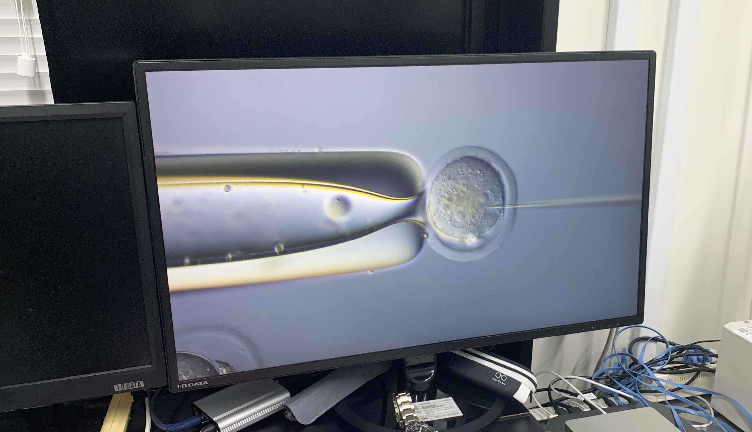 バーの先端のダイヤルをクリクリと回して、細いガラス管をマウスの卵に刺す、という作業をしてもらっていた。 |