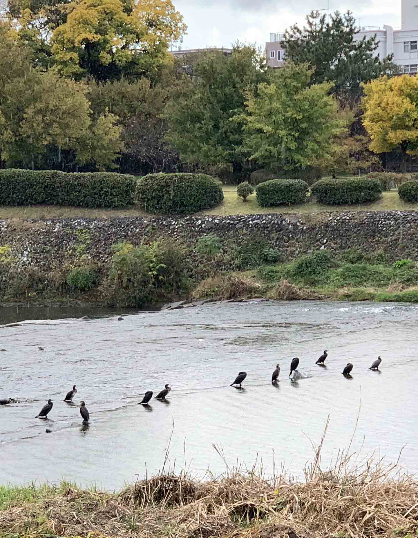 この日、クリエーションコア御車(みくるま)にあるリバーセルのオフィスで用務を済ませた後、医生研まで鴨川沿いを歩いた。「カワウ」が沢山いた。 |